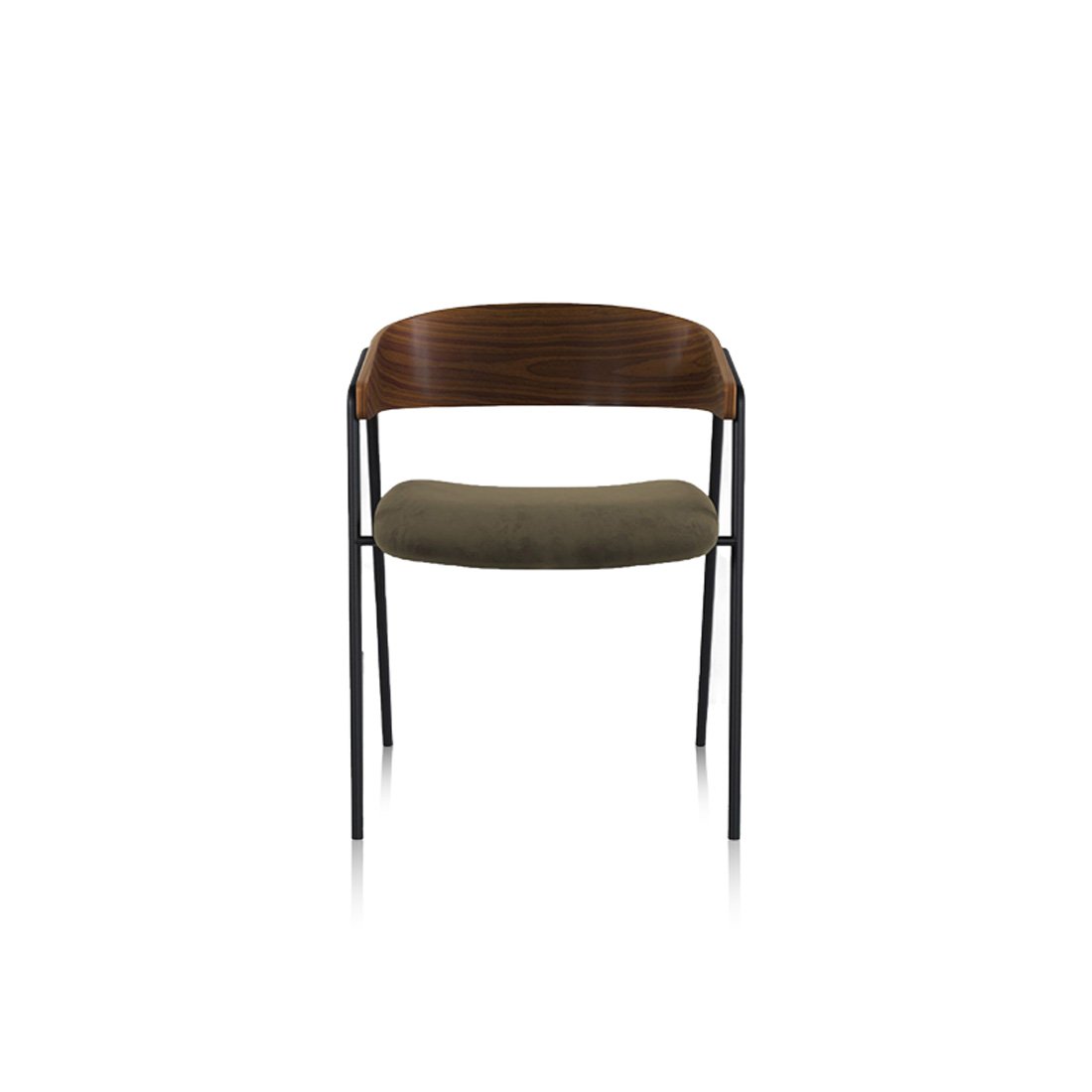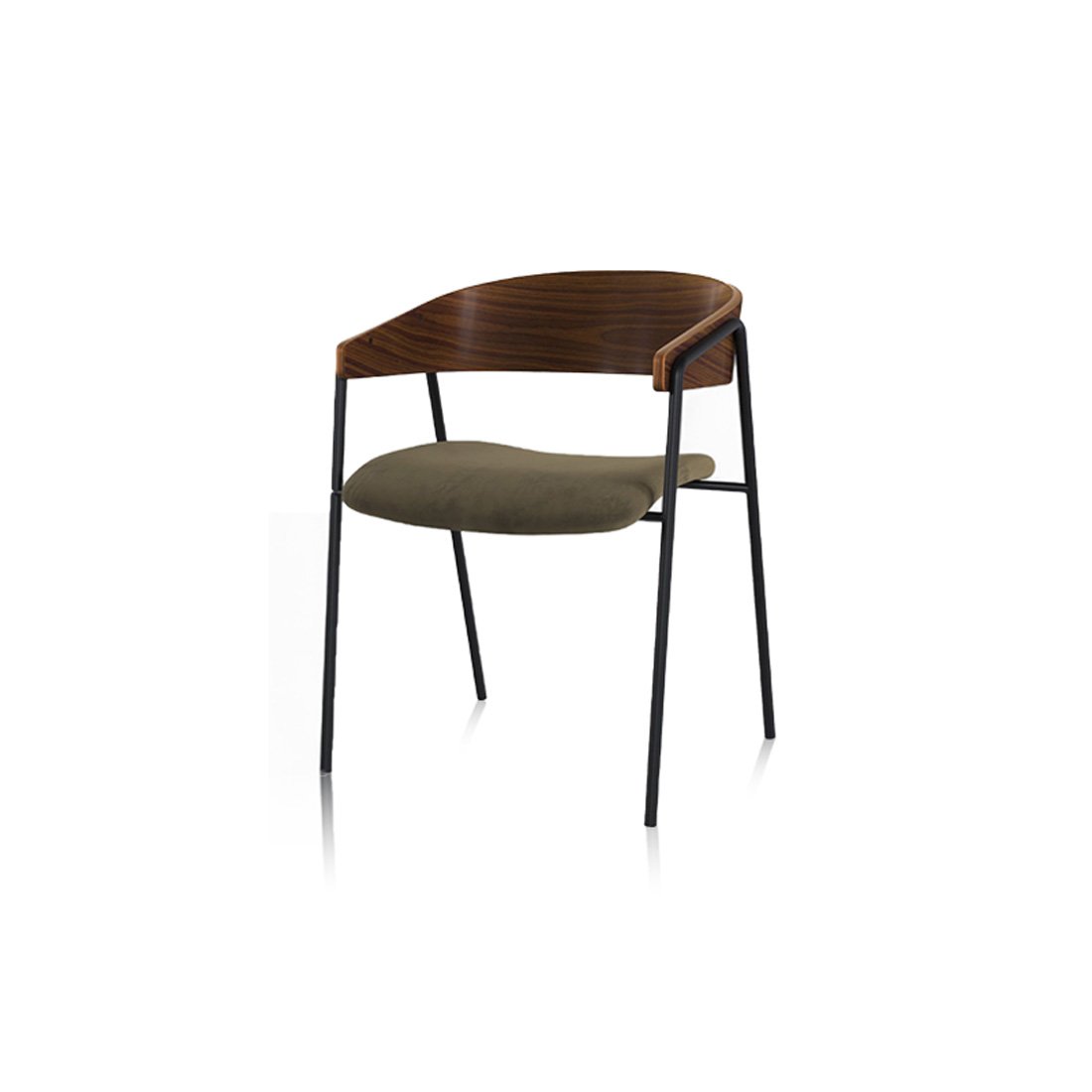Une gamme associant velours kaki et bois de noyer avec un piètement sobre & élégant en métal noir / Cette chaise [Amelia] apportera une touche vintage et un look rétro / On aime beaucoup le dossier arrondi en vois de noyer /