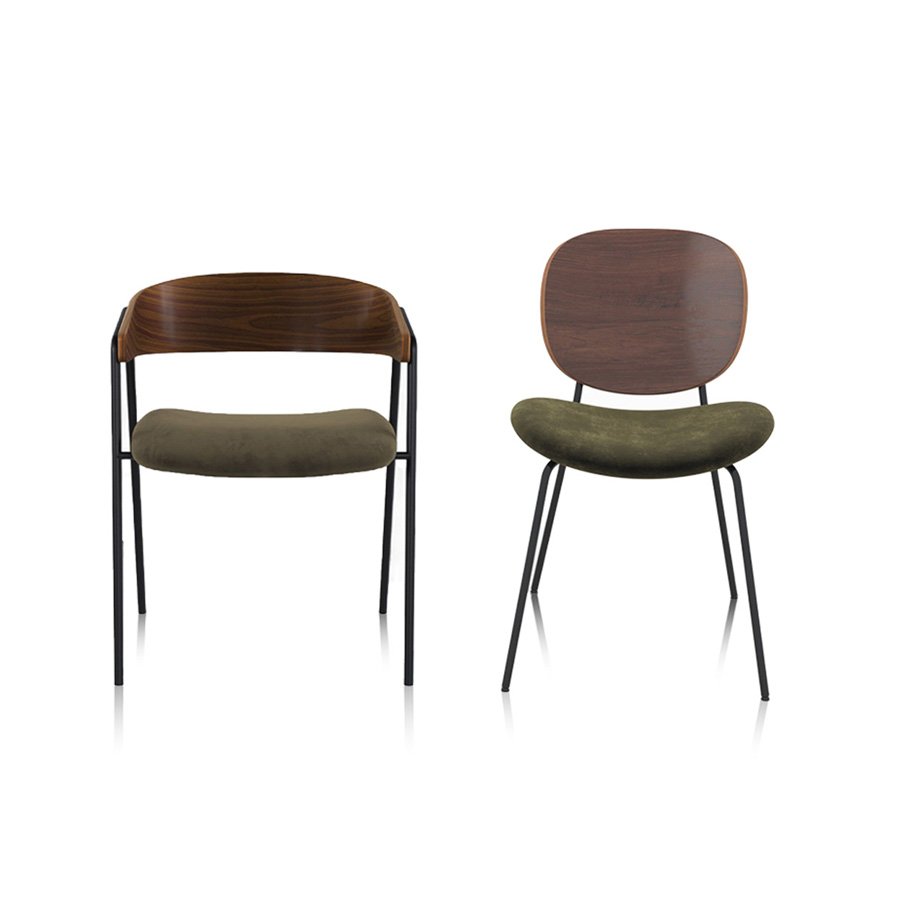 Une gamme associant velours kaki et bois de noyer avec un piètement sobre & élégant en métal noir / Cette chaise [Coleta] apportera une touche vintage et un look rétro /