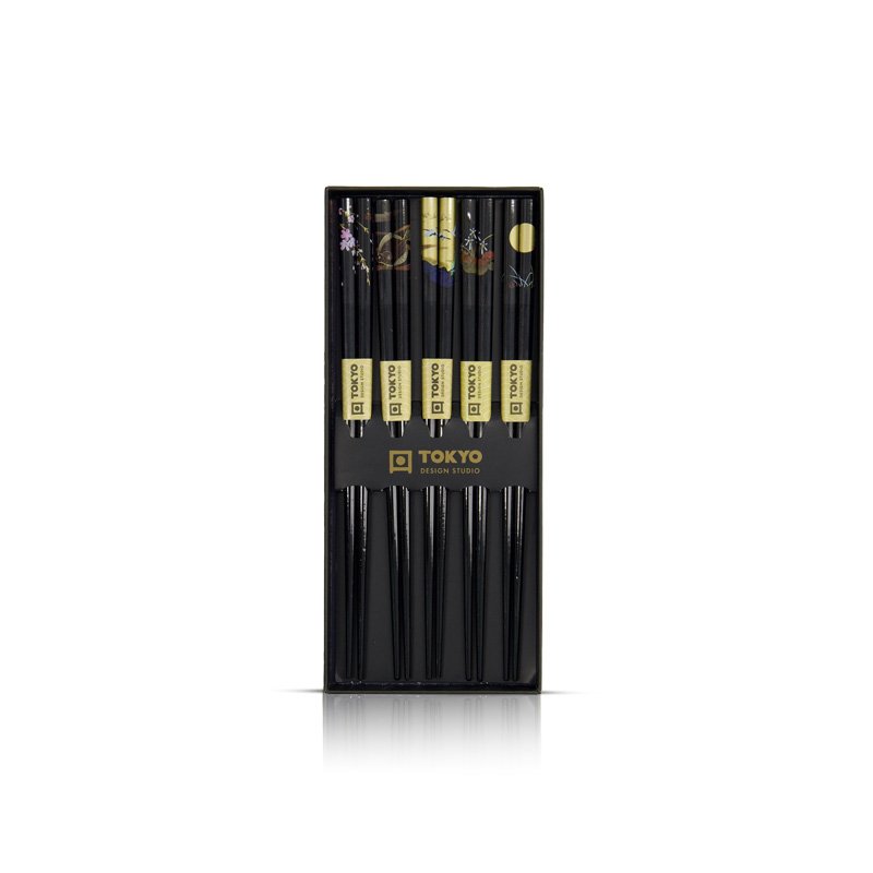 Un très joli coffret comprenant 5 lots de baguettes réalisées en bambou de haute qualité / Les baguettes ont toutes un design différent qui sera très apprécié par vos invités / Le cadeau idéal pour les amateurs de cuisine asiatique et les hôtes raffinés / Conseils d’entretien : lavage à la main recommandé / Pour préserver son aspect, nettoyez-le délicatement à la main et rangez-le au sec /