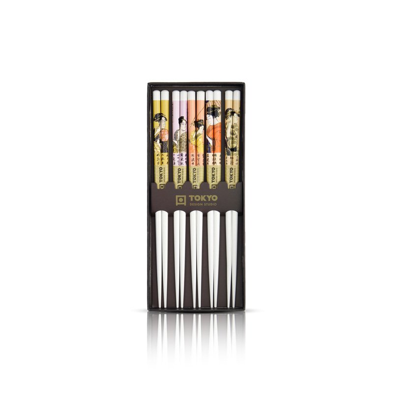 Un très joli coffret comprenant 5 lots de baguettes réalisées en bambou de haute qualité / Les baguettes ont toutes un design différent qui sera très apprécié par vos invités / Le cadeau idéal pour les amateurs de cuisine asiatique et les hôtes raffinés / Conseils d’entretien : lavage à la main recommandé / Pour préserver son aspect, nettoyez-le délicatement à la main et rangez-le au sec /