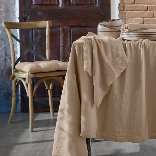 Nappe [Gaze de coton] / Une très jolie gamme en gaze de coton qui habillera élégamment votre table pour vos repas en famille et entre [ amis ] / 100 % gaze de coton (125 gr/m²) / Finition avec ourlet / Labels DETOX TO ZERO by OEKO-TEX® et BSCI / Retrouvez les serviettes de table assorties ainsi que les autres modèles de la [ gamme ] : / Existe en 2m50 & 3m50 /