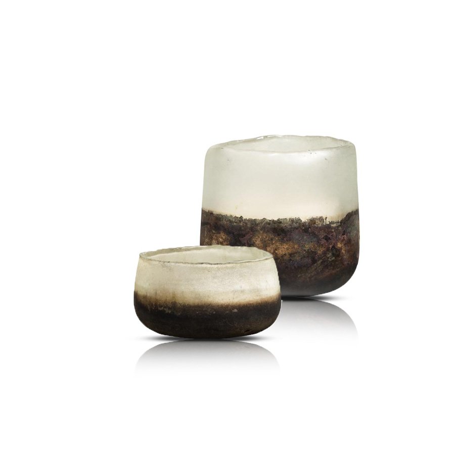 Photophores [Dune] / Créez une ambiance tamisée et intime grâce à cet ensemble de photophore en verre au magnifique dégradé de brun et au style très réussi / Une fois allumée, une lumière chaude transforme vos soirées / Existe en plusieurs tailles /