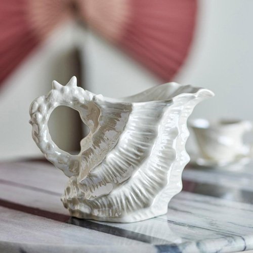 Un pichet avec une finition métallisée qui lui confère un doux éclat / En forme de coquillage, il présente une surface ondulée et une anse courbée, rehaussée de discrets détails de coquillage et d’étoile de mer / Sa silhouette raffinée apporte une touche décorative à tous les univers / Retrouvez également la tasse avec soucoupe dans la même gamme /