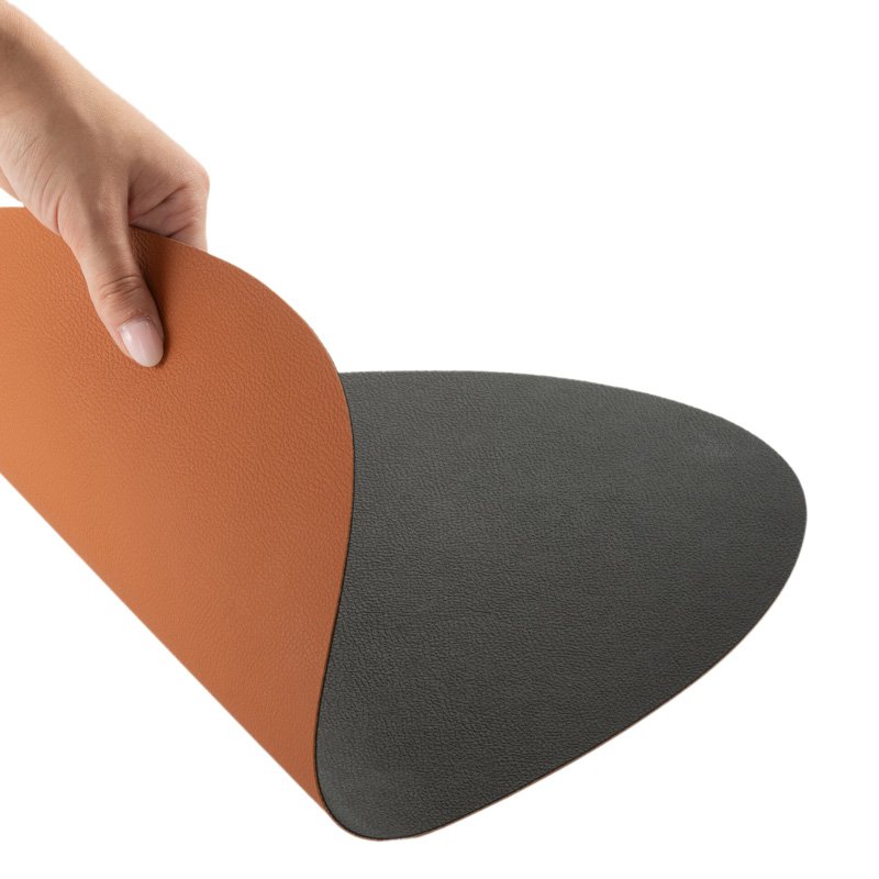 Une gamme de sets de table en pvc noir effet cuir grainé / Permet de protéger votre table tout en réchauffant la décoration de table / Une surface pratique d’entretien avec un rapide nettoyage à l’eau / 2 formes disponibles : oval ou rond / Le format oval est noir d’un côté et marron cognac de l’autre / Le modèle rond est quant à lui noir sur les 2 faces /