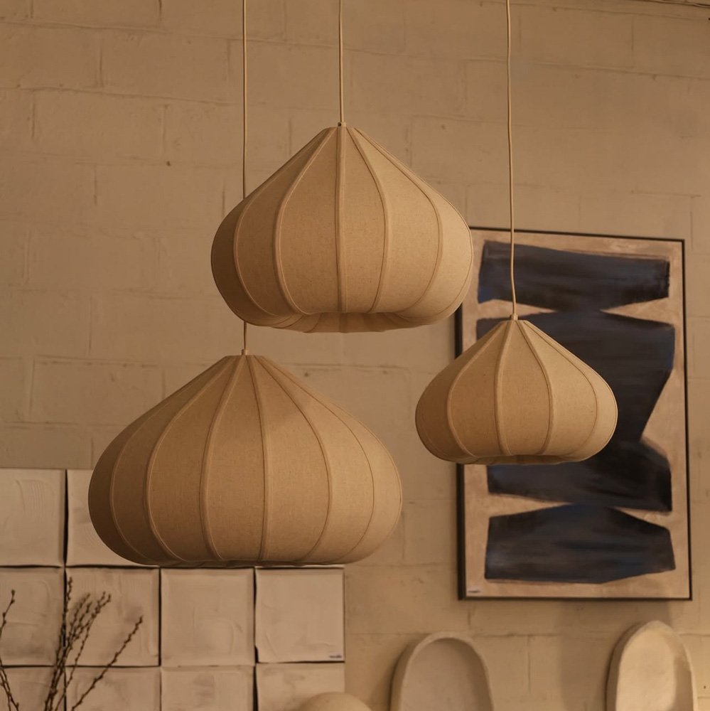 Légèreté & cosy pour ces suspensions [Zeda] / Un style feutré et une ambiance douce / Tout est réuni pour les installer chez vous / Ses armatures courbées et son magnifique plissé en font un élément de décoration subtil, moderne mais aussi cosy et intime /