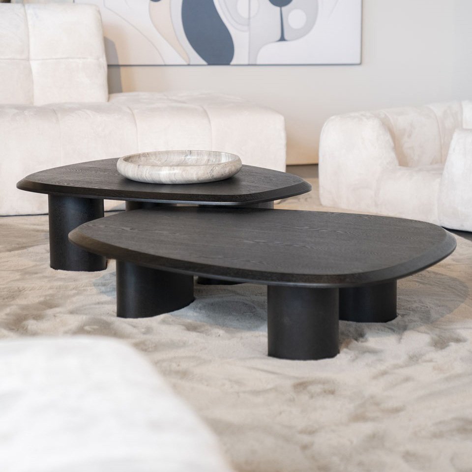 Après la table à manger [Alta] : / Nous vous présentons les tables basses dans la même veine / Un duo à placer comme bon vous semble dans votre salon / À la fois imposantes avec leurs gros pieds ronds mais à la ligne légère et épurée grâce aux plateaux ciselés / Une forme tellement originale & artistique / Une finition satinée pour un toucher doux / Existe en 2 tailles /