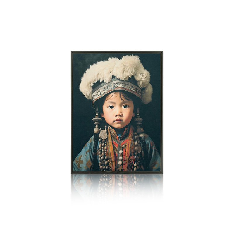 Toile [Mongolian child] / Une grande toile tendue réalisée en coton 100% biologique placée dans un [cadre flottant/caisse américaine] noire qui rehausse encore la toile / Le type de pièce qui rehaussera votre déco et votre intérieur en apportant une ambiance chaleureuse & matière / Retrouvez les autres modèles de notre gamme / Fabrication sur demande et livraison sous un délai de 15/20 jours directement chez vous pour ce type de produits / Existe en 3 dimensions /